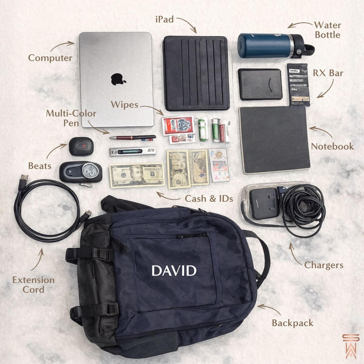 Water Bottle. Staying hydrated is always important—especially when I’m presenting. Bringing my favorite reusable bottle means the water is fresh and cold, and I avoid plastic. Good for me and the planet.